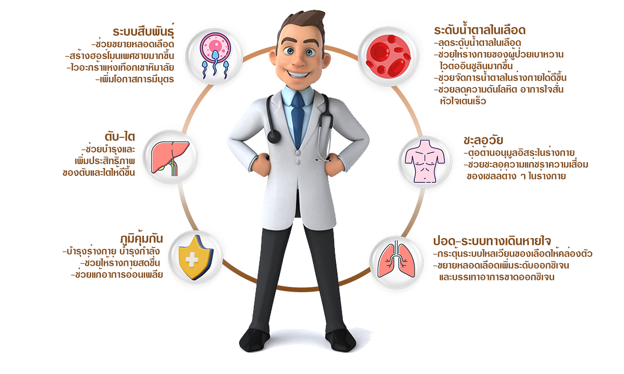Add energy to the body with ginseng extract mixed with cordyceps extract and vitamin E, which has properties to nourish the body. Relieve fatigue after heavy activities all day. It also helps to balance the circulatory system better. help clear the brain Ready to start a new day with energy
